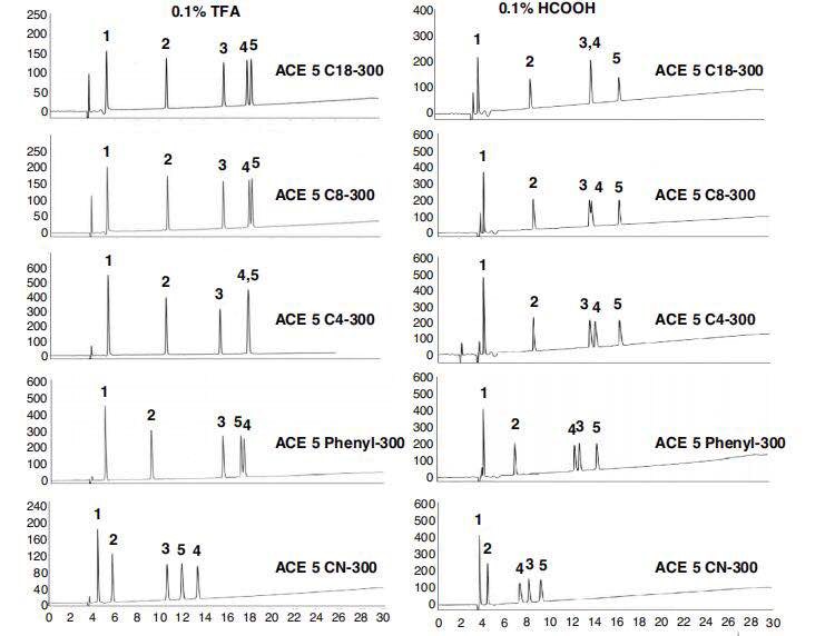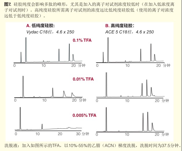 4,pH對(duì)多肽保留的影響:在反相色譜中, 多肽的分離一般在酸性環(huán)境下進(jìn)行。