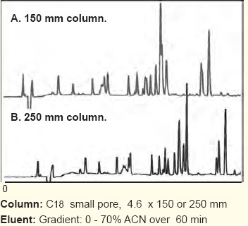 但是對(duì)于小分子多肽,往往長(zhǎng)柱比短柱的分離度大,這點(diǎn)類(lèi)似化學(xué)小分子。
