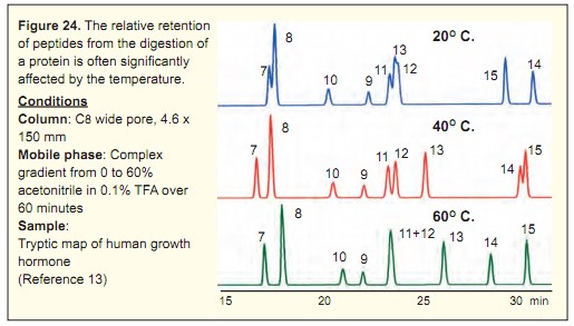 柱溫以及流動(dòng)相的溫度從兩方面影響多肽的分離: