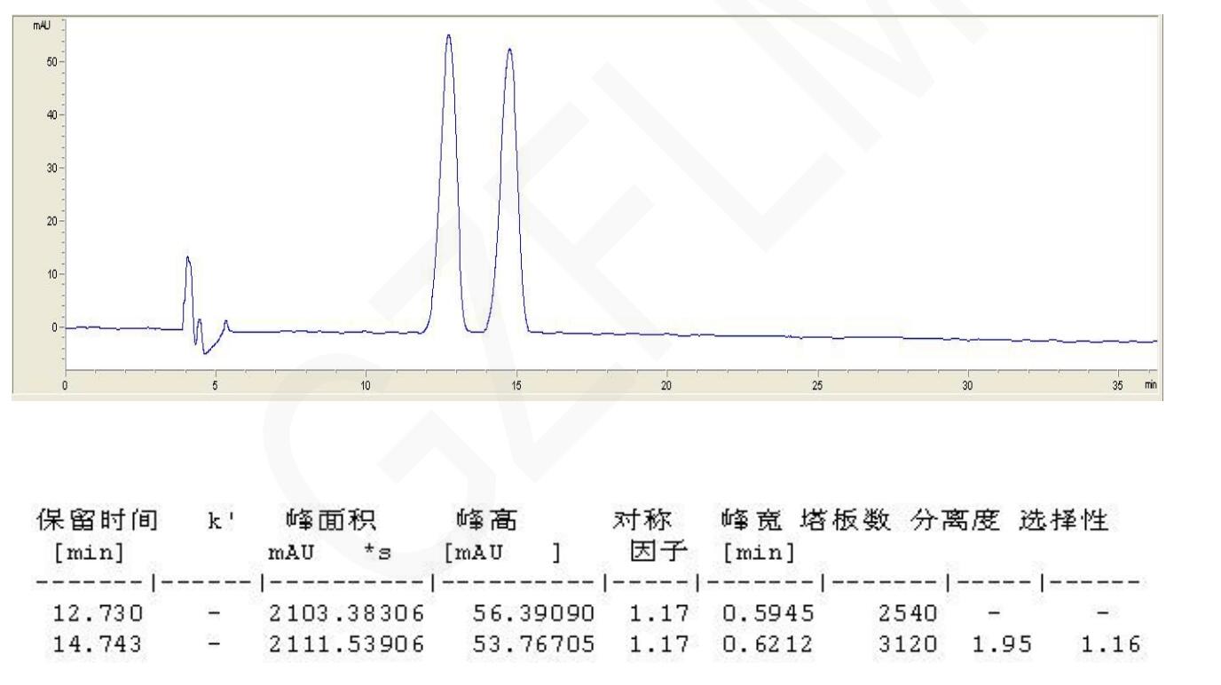 色譜柱:Chiral MZ(2)-RH 5μ 250*4.6mm(貨號(hào): FMG-AC5-B02-R)