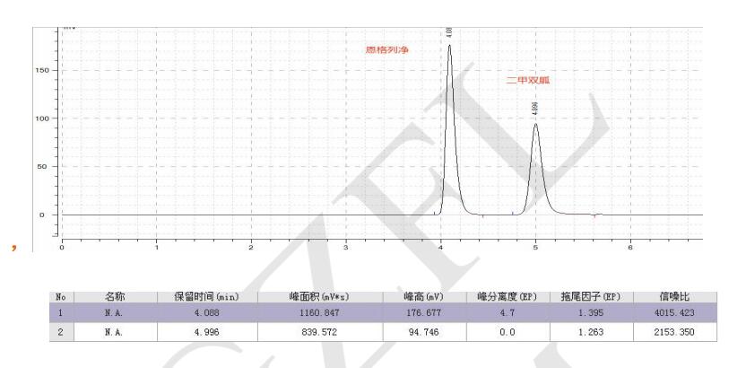 方法說明:二甲雙胍與恩格列凈為常用降糖藥,Comixsil HCS 固定相可在簡單流動相條件下實(shí)現(xiàn)對 二者的同時(shí)分析。分離度大且柱效良好。