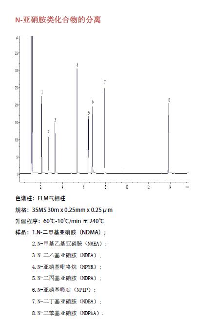 N-亞硝酸銨類化合物的分離(基因毒性和元素雜質(zhì)相關(guān)應(yīng)用圖譜)菲羅門(mén)氣相柱